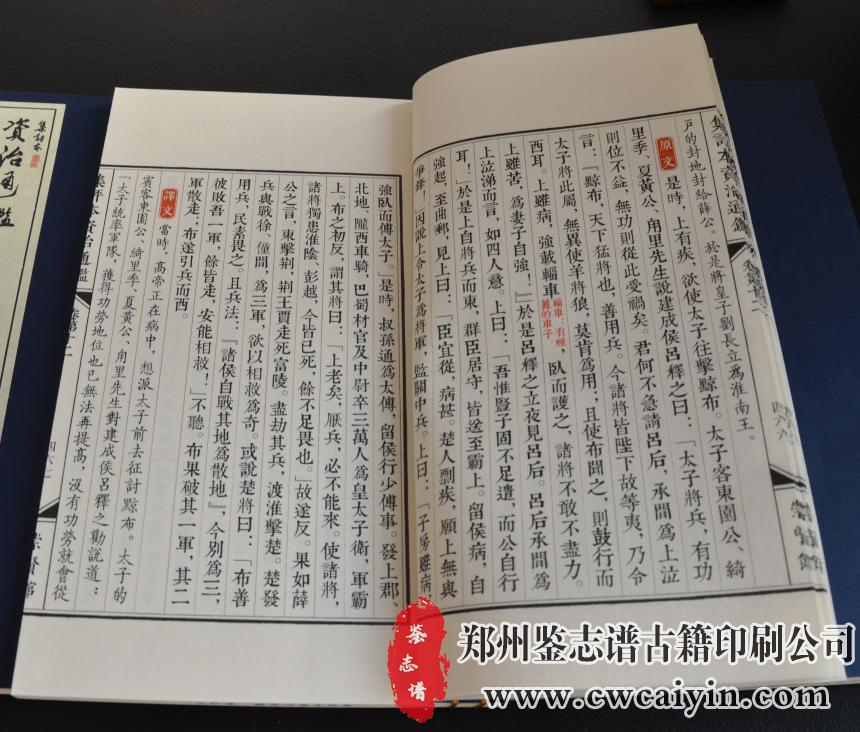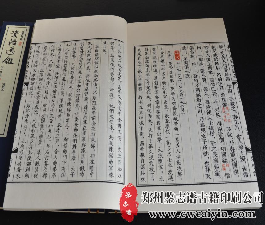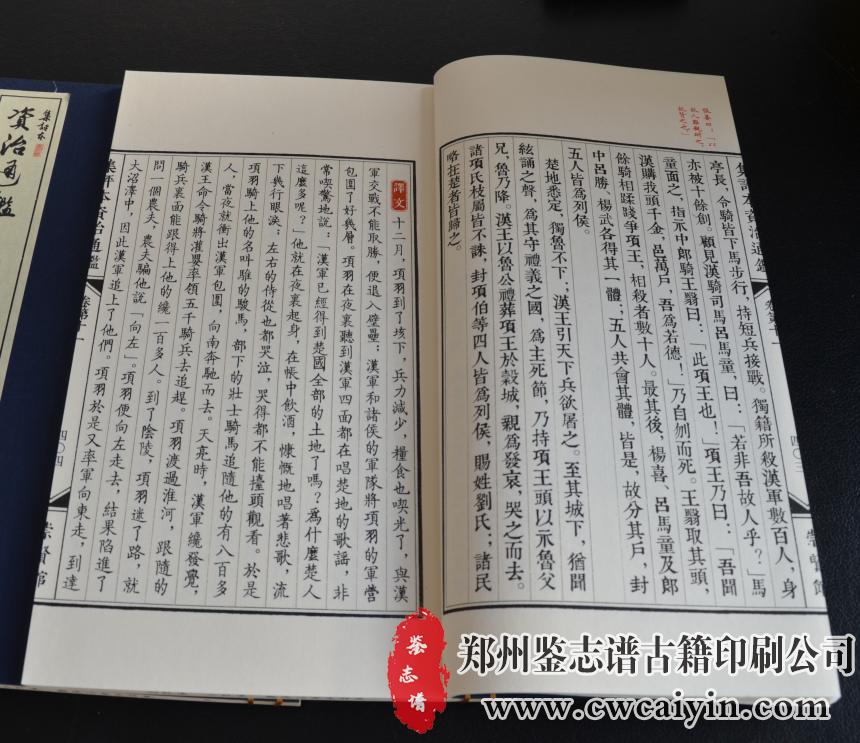 日前,由郑州鉴志谱古籍印刷公司负责设计排版的《资治通鉴第二函》印刷完毕,顺利交付。