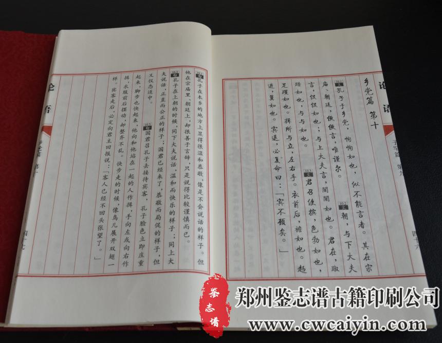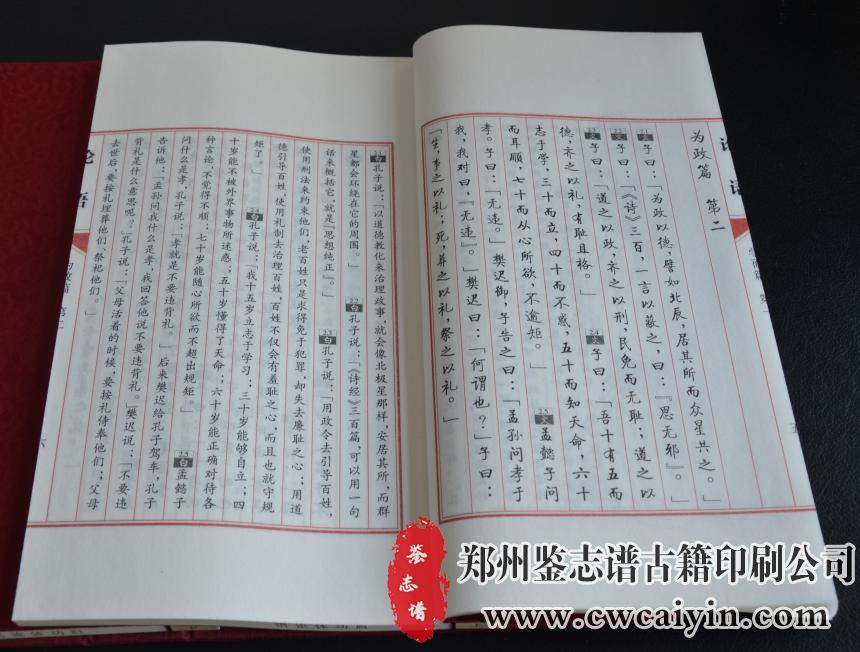 日前,由郑州鉴志谱古籍印刷公司负责设计排版的《论语》印刷完毕,顺利交付。