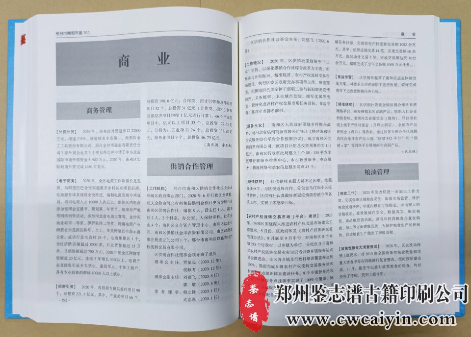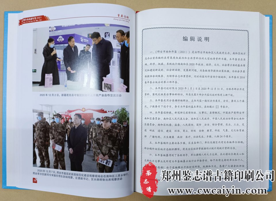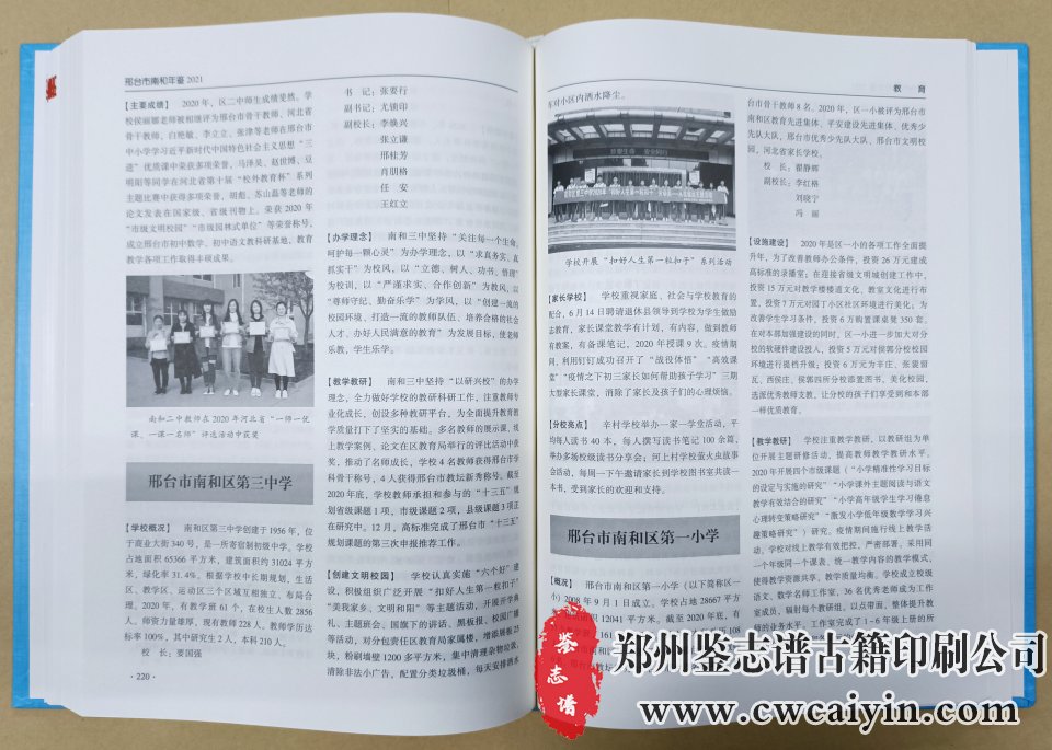 日前,由郑州鉴志谱古籍印刷公司设计排版的《邢台市南和年鉴》印刷完毕、顺利交付。