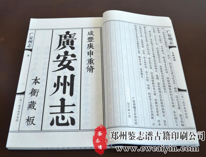 日前,由郑州鉴志谱古籍印刷公司负责设计排版的《广安州志 》印刷完毕,顺利交付。