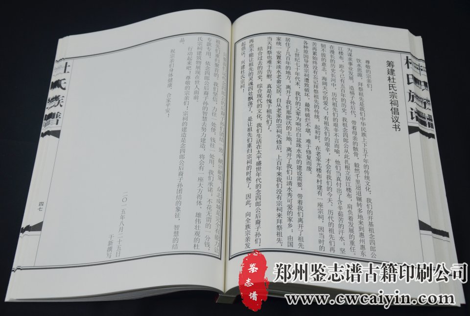 日前,由郑州鉴志谱古籍印刷公司设计排版的《杜氏族谱》印刷完毕、顺利交付。