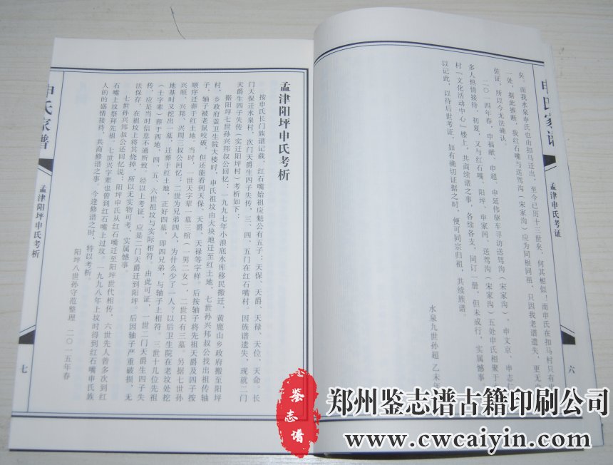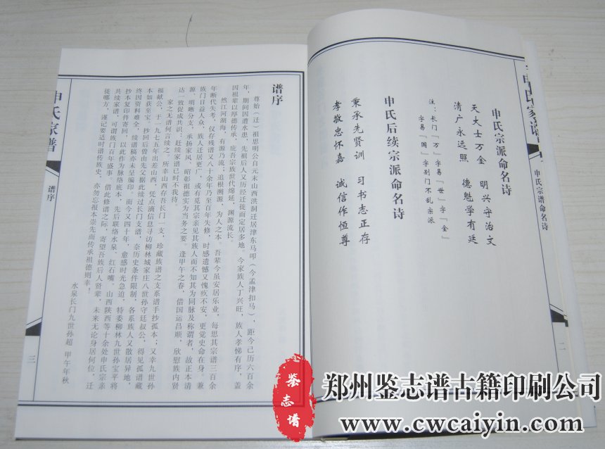 日前,由郑州鉴志谱古籍印刷公司设计排版的《申氏家谱》印刷完毕、顺利交付。
