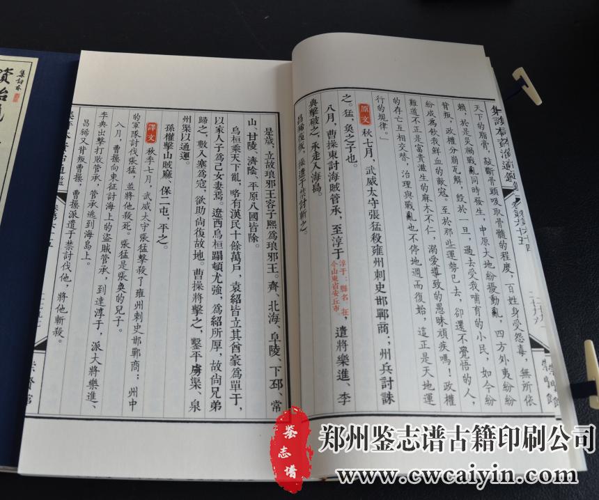 日前,由郑州鉴志谱古籍印刷公司负责设计排版的《资治通鉴第八函》印刷完毕,顺利交付。